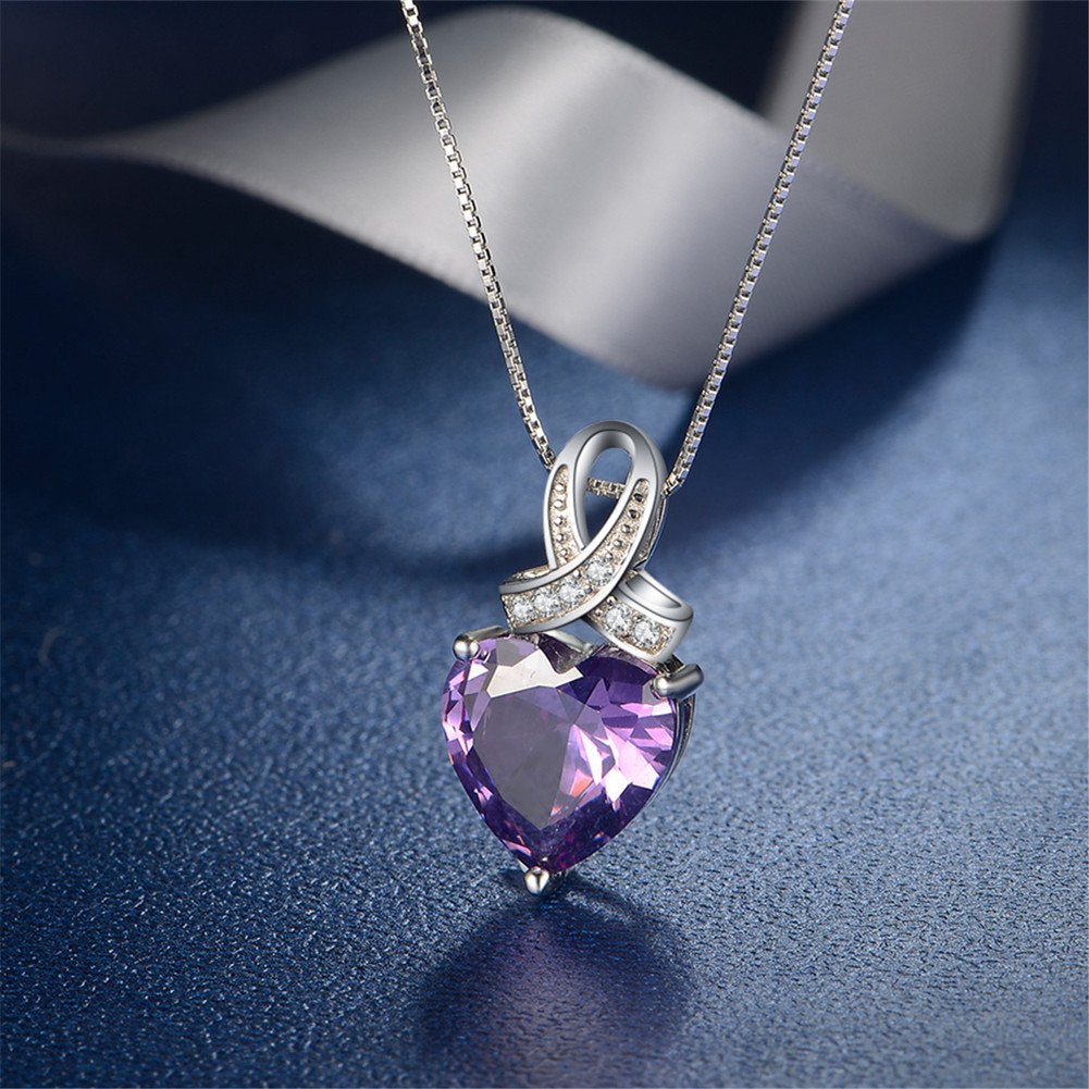 MABELLA 925 Sterling Silver Simulated Birthstone Gemstone Pendant Heart Necklace, Gifts for Women