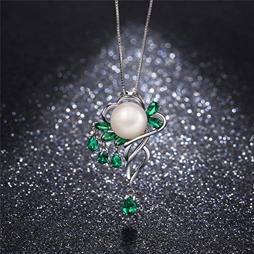 MABELLA Genuine Cultured Freshwater 10mm AAA+ Pearl Pendant Simulated Emerald Necklace Fine Jewelry Gifts for Women