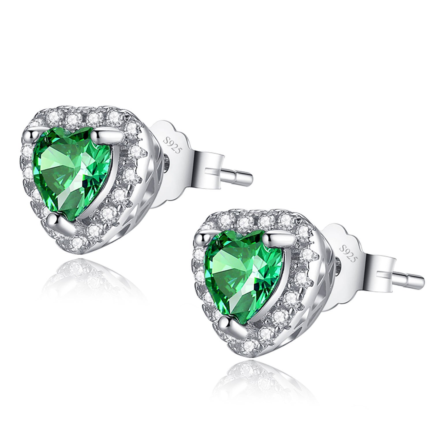 MABELLA Sterling Silver Halo Heart Simulated Birthstone Gemstone Earrings Studs Cubic Zirconia for Women…